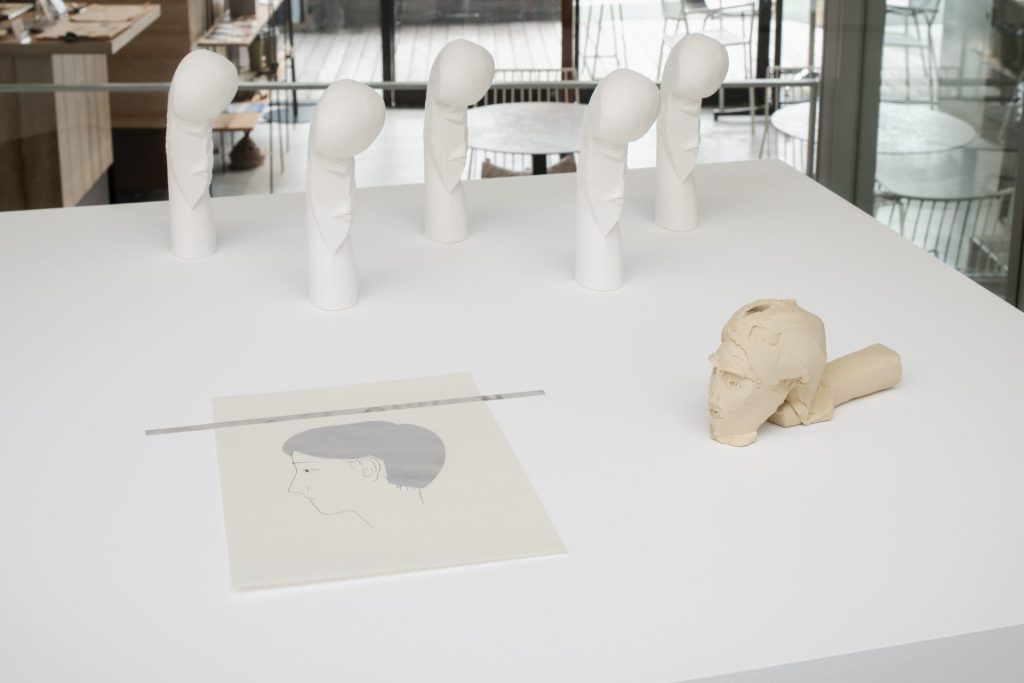 だが今回の「古典」をめぐる思惑は、近藤と冨井でいくぶん食い違っている。近藤は彼がある種の標本として模写する、一群の日本画家たちの作品をそのことばに重ね合わせ、冨井は同じことばで具象彫刻、とくに西洋彫刻の伝統の一端を担う、人間の頭部の像を思い描いている。