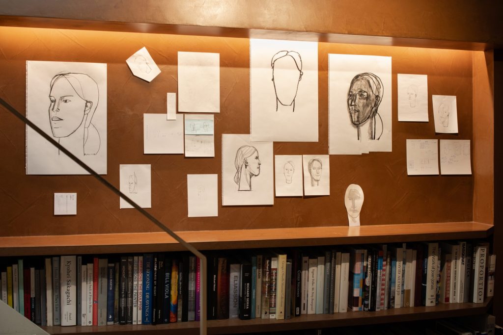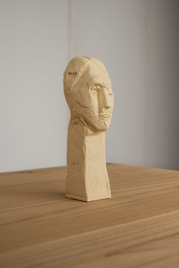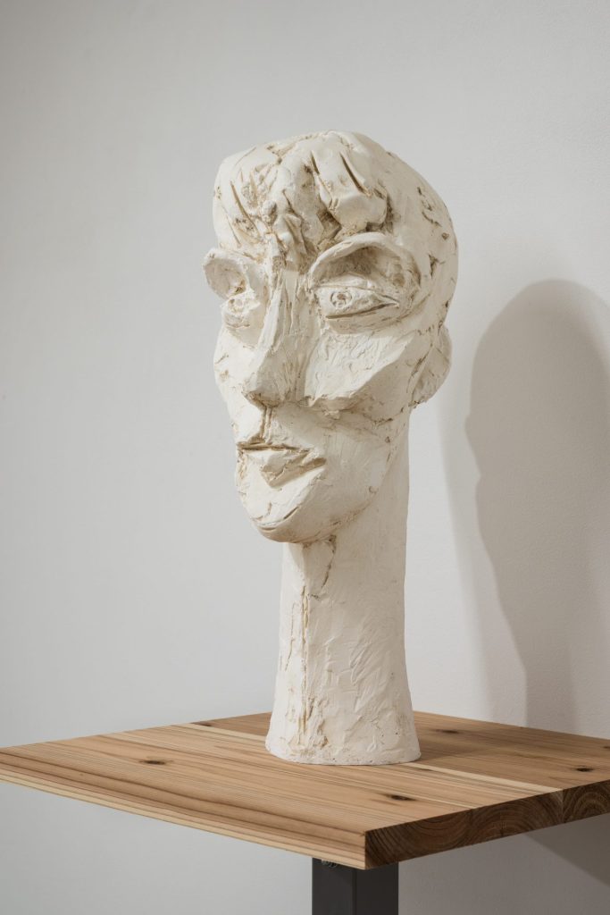私が具象彫刻から離れたスタイルで制作をしているのは、それと付かず離れずの距離、ヒットアンドアウェイで関係していたかったからだが、ここにきてその関係を濃いものしたいと思うようになった。どのような濃さになるかは問うところではない。私の仕事のこれまでとこれからを考えるためにも「一度だけ」お付き合いしたいのだ。人の頭部(首像)と向き合いたい、全身ではなく頭部。もし、頭部が抽象的な実感を伴った何か––建築物や宇宙船のような––になったら、それは人でも彫刻でもない、そうでありながら違う何か––空間そのもの、問いがカタチになったもの––にならないだろうか。