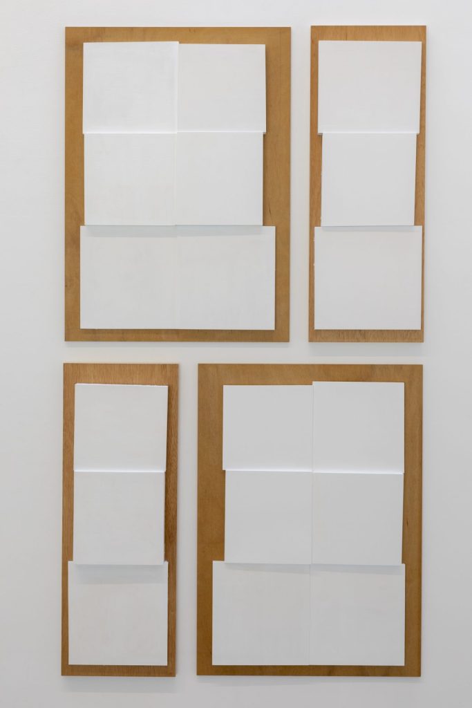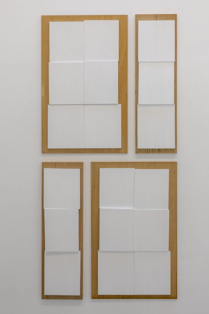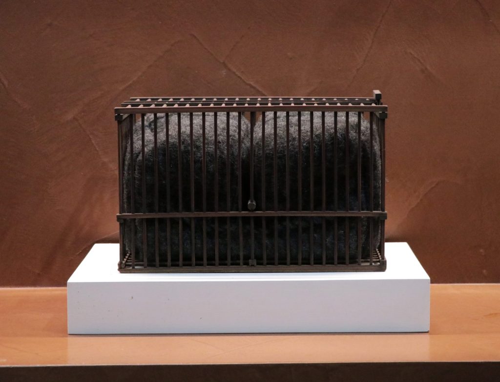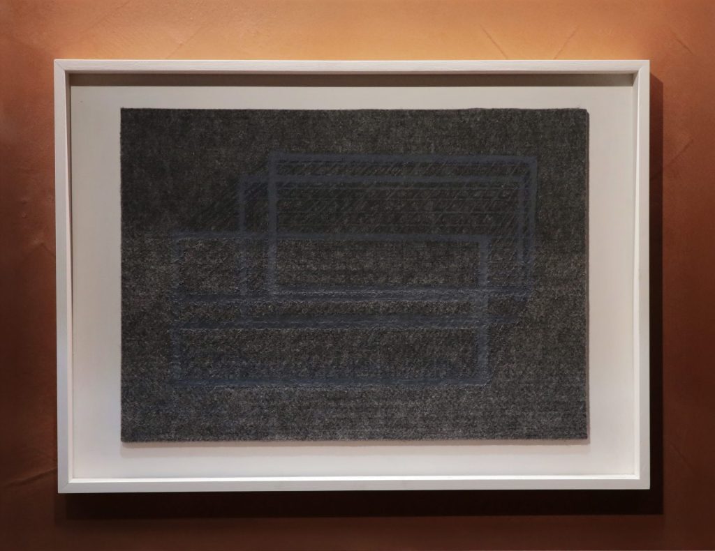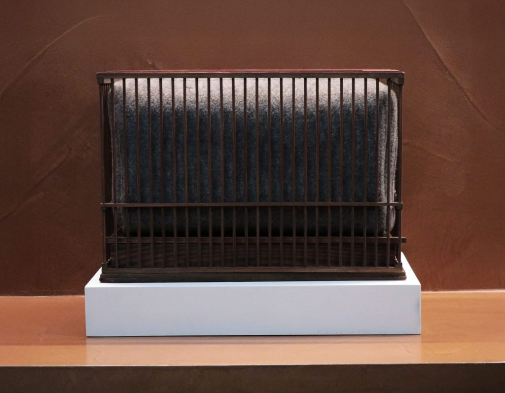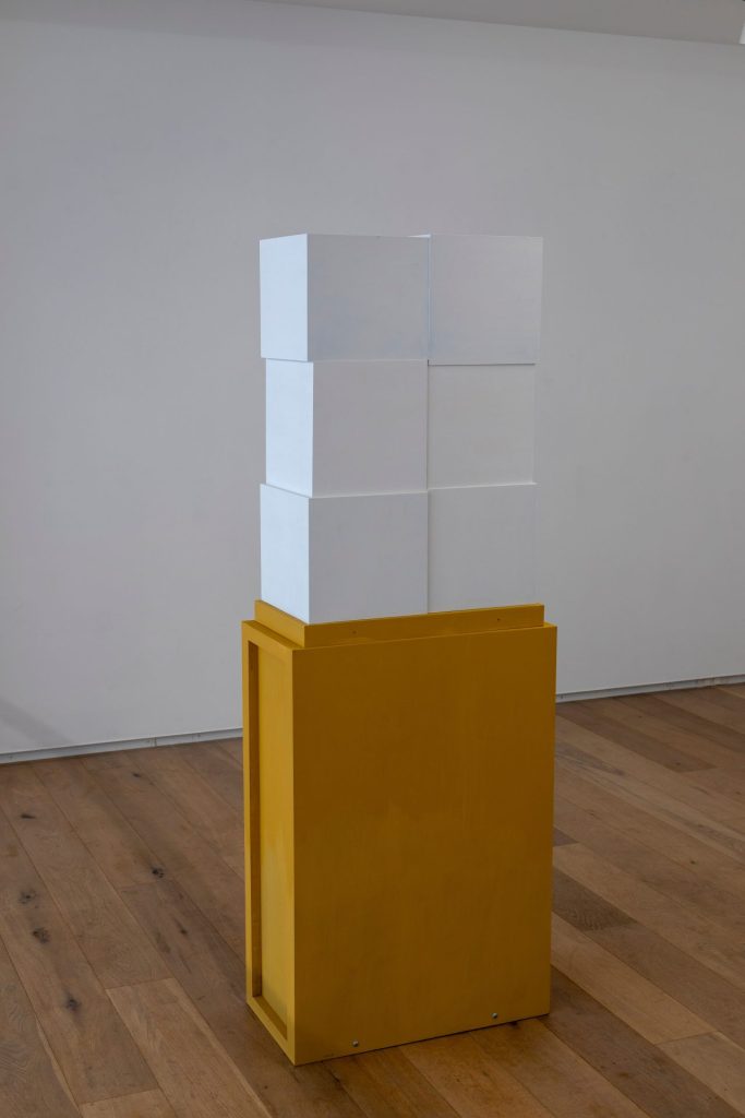 改めてトルソの構造を見ると、6個の筐体はわずかにずれながら積層されており、その微細な差異が周囲に生じる隙間の造形を生み出している。《隙間のエレメントⅠ》は、こうして生まれた見えざる立体を開示し、紫牟田の作品世界に新たな位相をもたらしている。