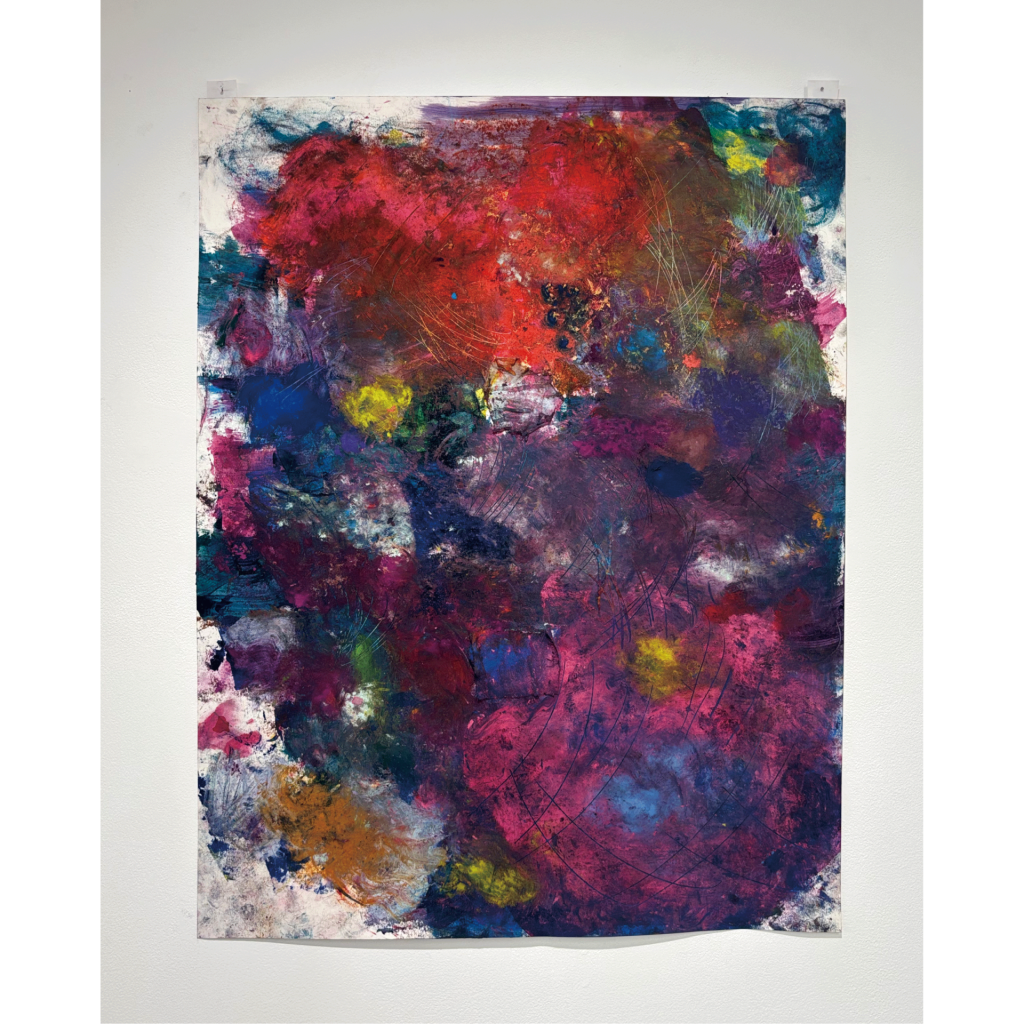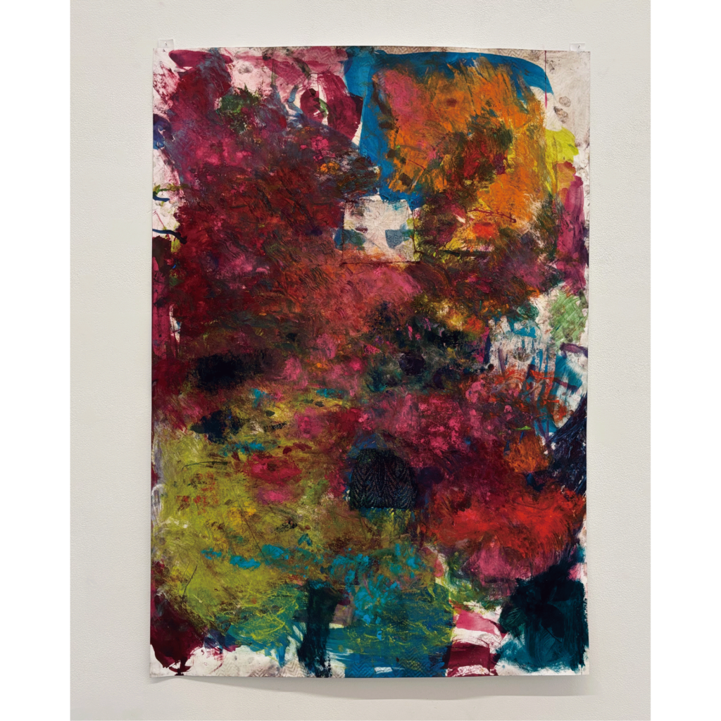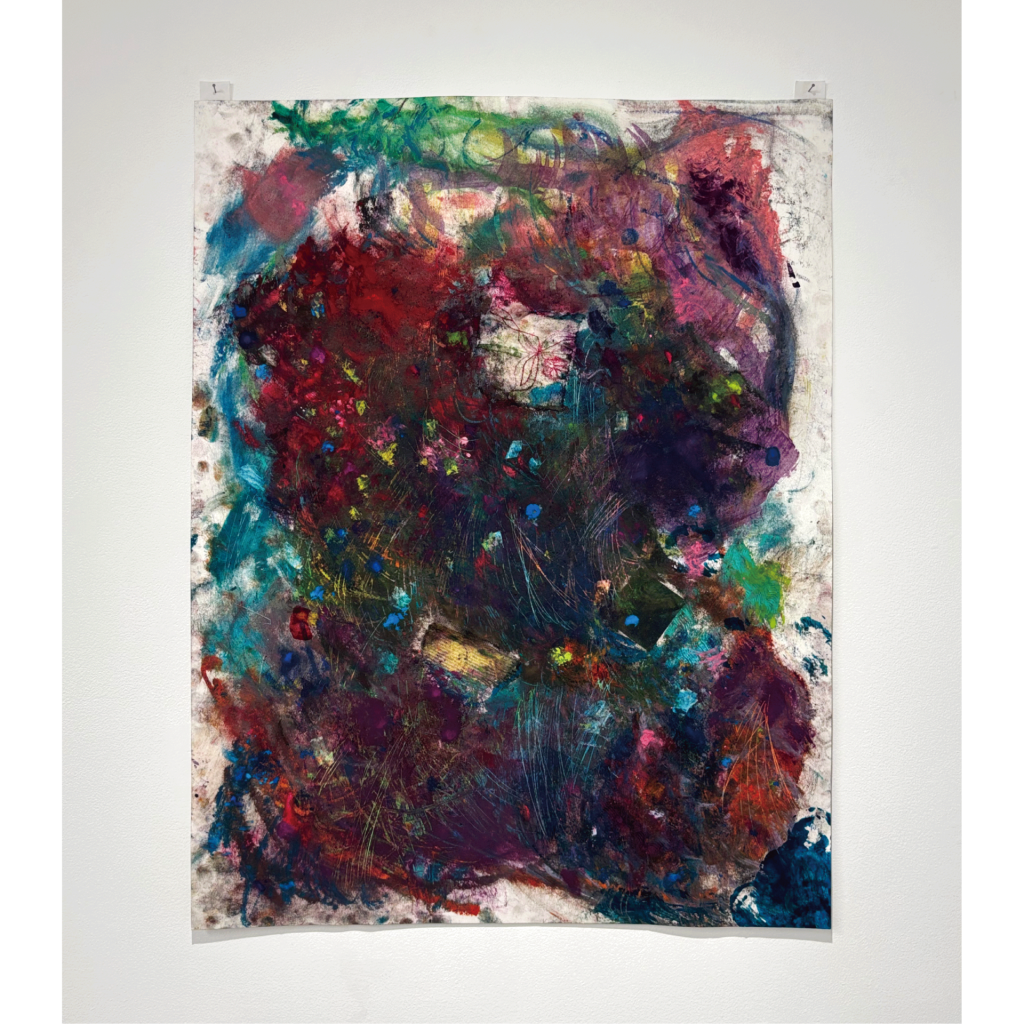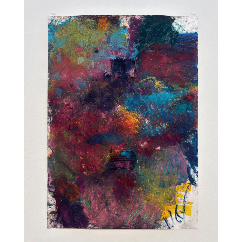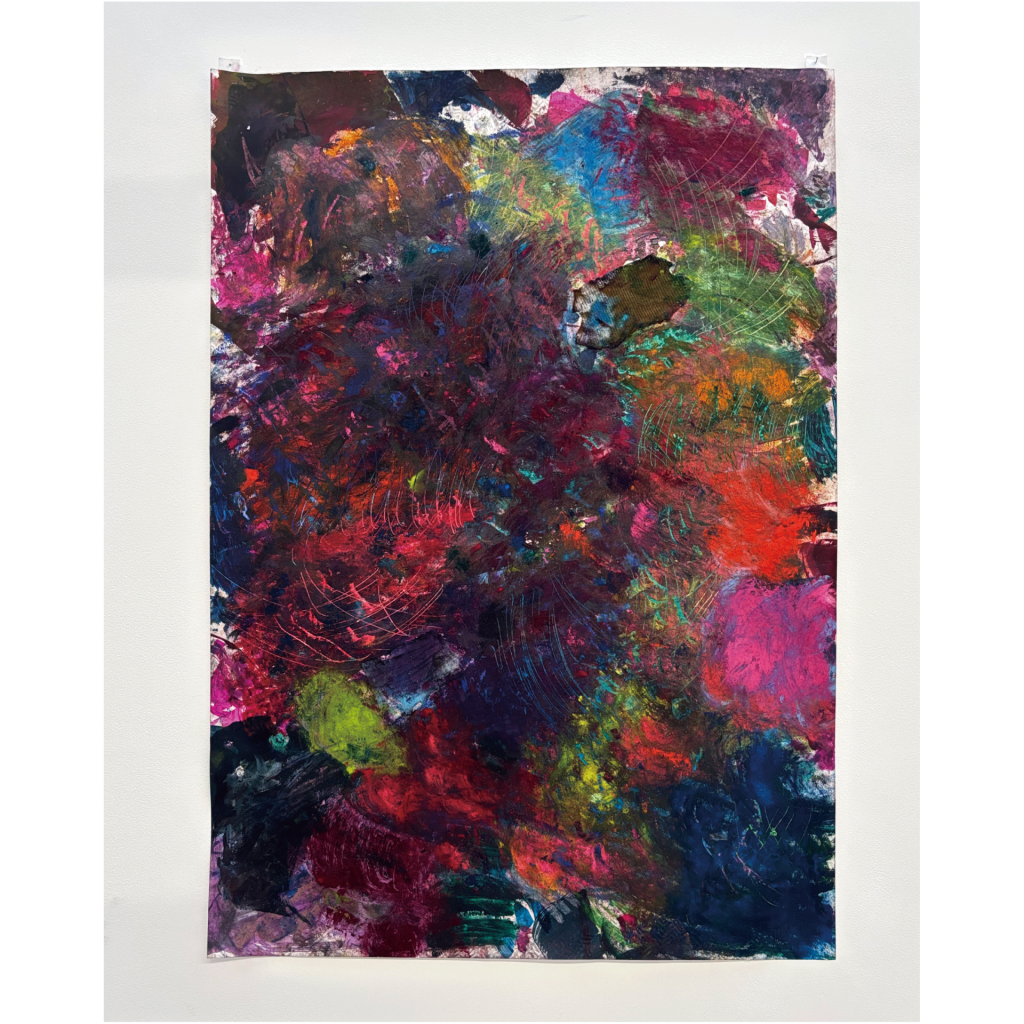 Untitled, 100 x 70 cm, Mixed media on paper, (oilpastel, drypastel, ink and cloth on paper), 2025