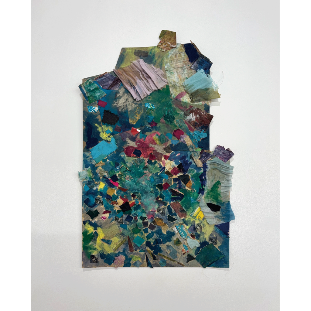 Untitled, 46 × 30 cm, Mixed media on paper, (oilpastel, drypastel, ink and cloth on paper), 2025