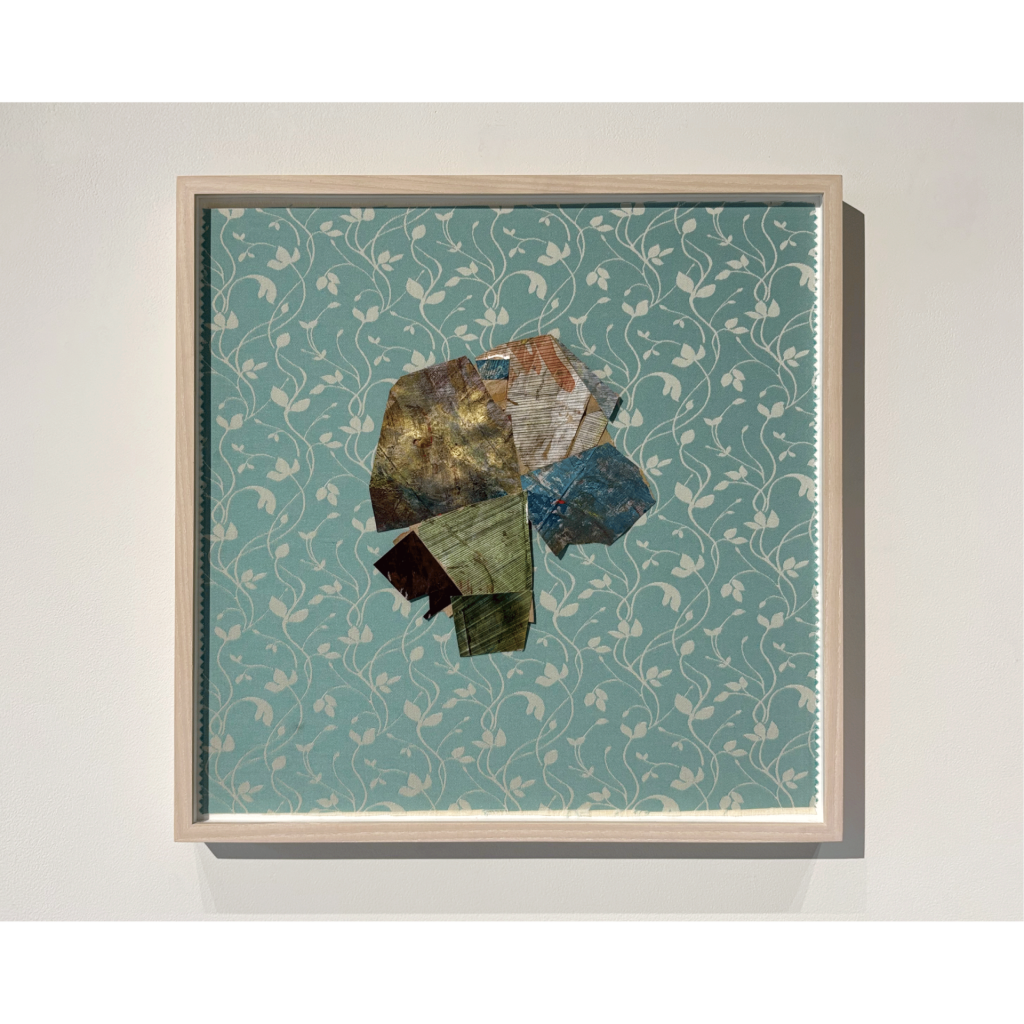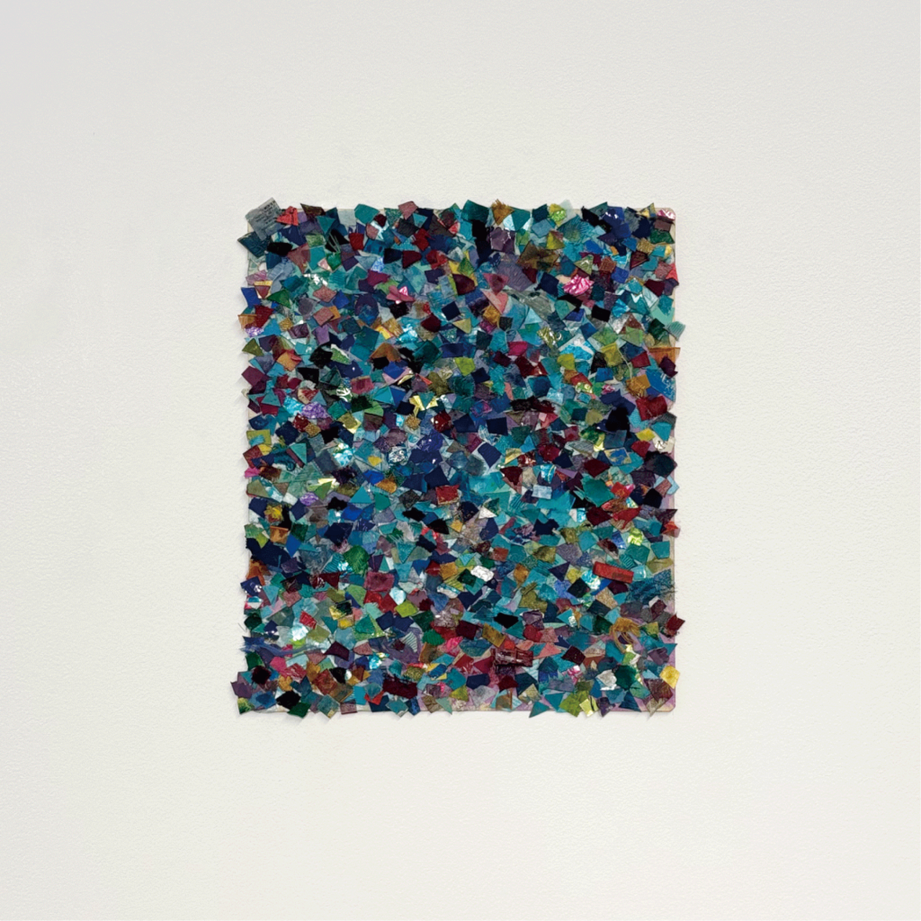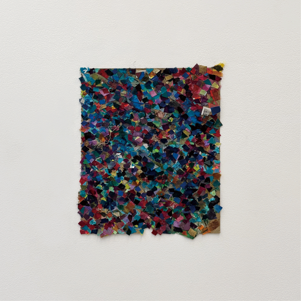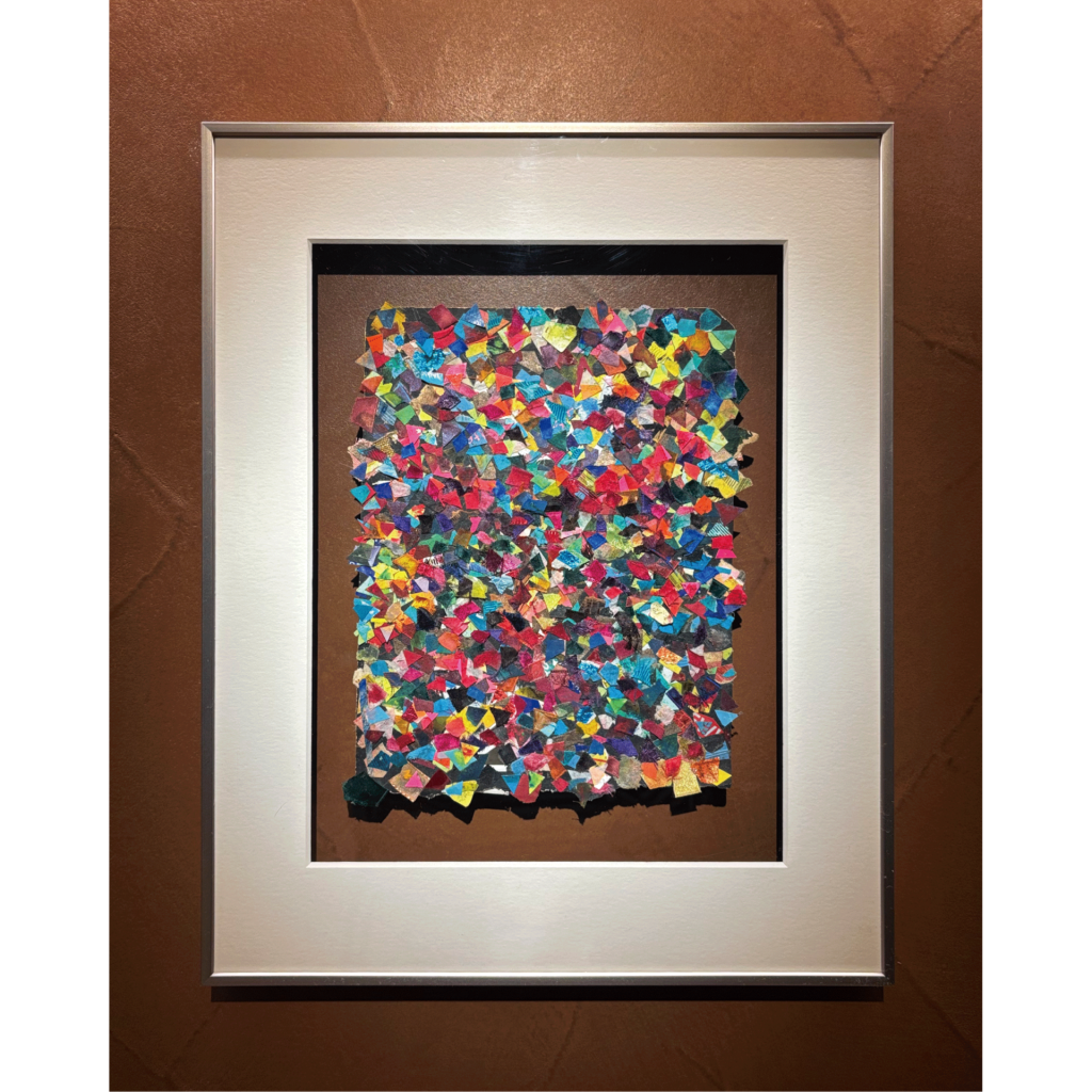 2019年に発表された作品群は、異素材を精緻に裁断・配置することで、記憶の断片を呼び起こすようなコラージュとして構成されていました。そこに重ねられた色彩は、物質の上にただ在るのではなく、精神的な層として画面に浮かび上がっていました。