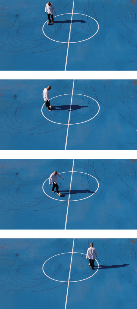 The video piece, DELUGE, captures a figure in continuous rotation, a motion both infinite and constrained. The sound, composed by Yitzhak Shushan, reinforces this sense of suspended rhythm, where time is both measured and elusive. The circle—a recurring motif—evokes clocks, rituals, and the unspoken rules that govern change, return, and expectation.