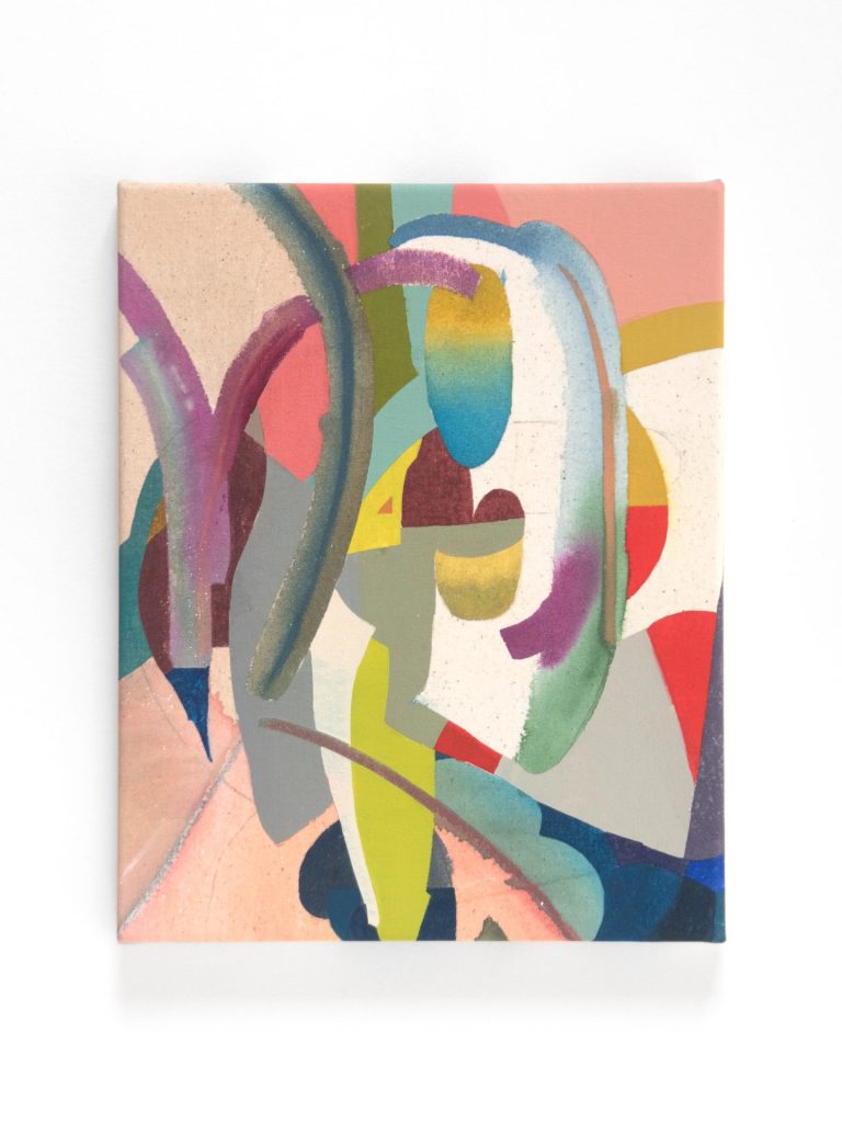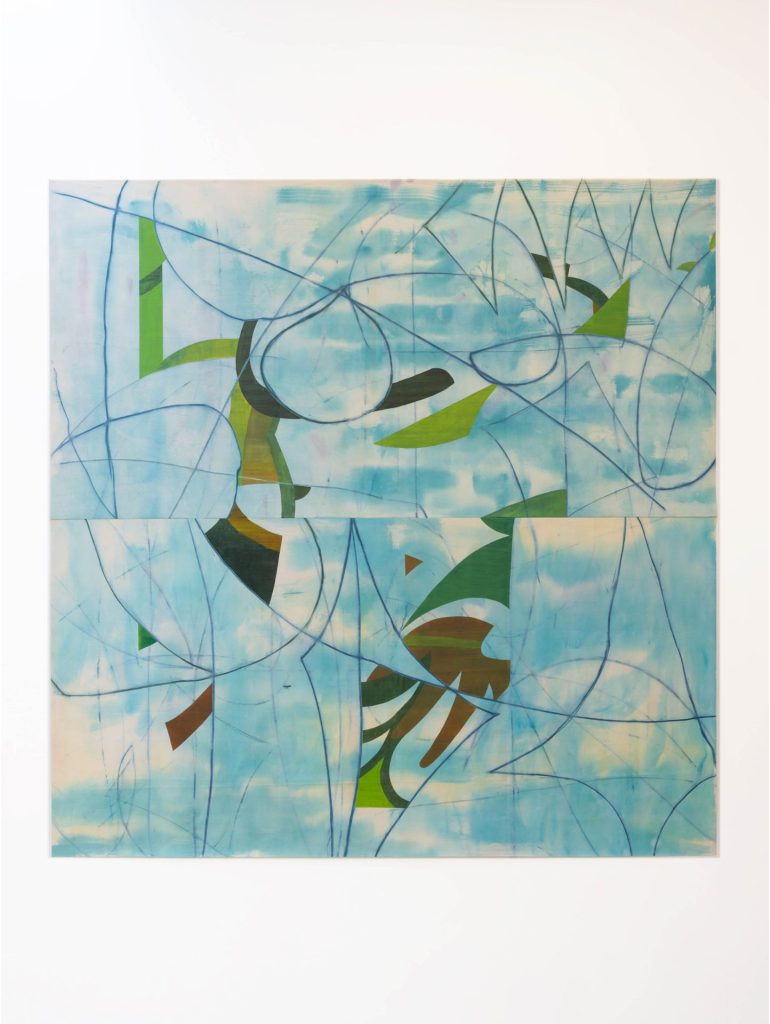 Multiple images drawn on separate supports are digitally composited, sometimes dismantled, and repeatedly reworked through a process of advancing and retreating. Images conceived in this way appear as though the completed form has been called back from the future, ultimately crystallizing into a single painted work through the artist’s hand.